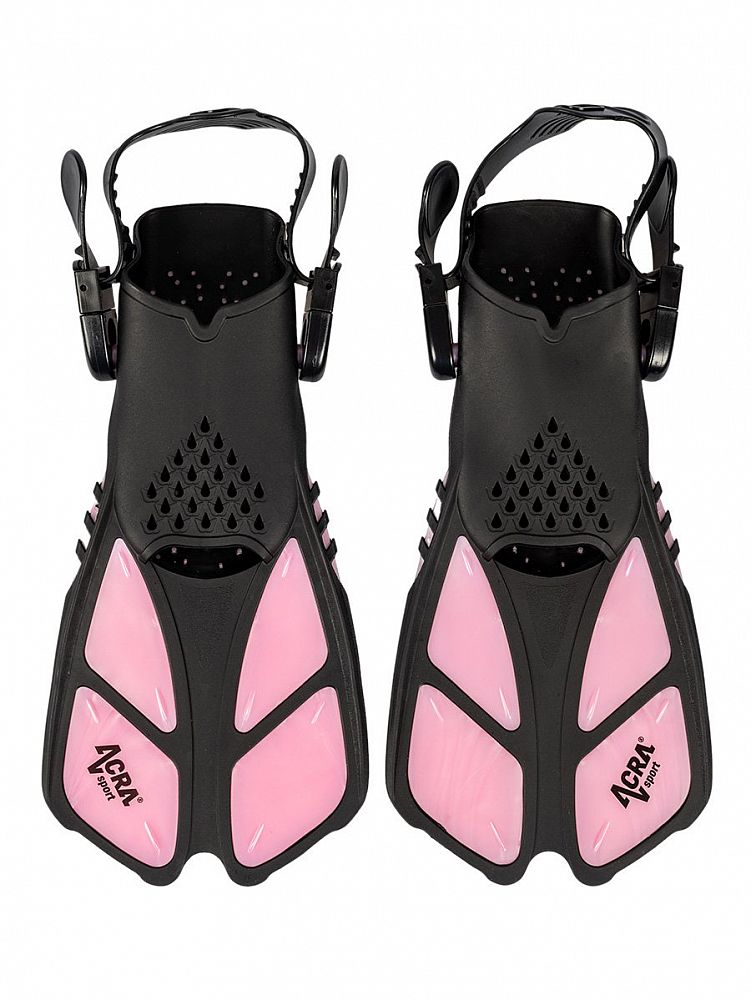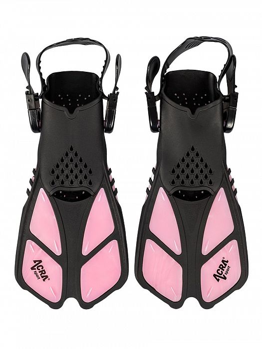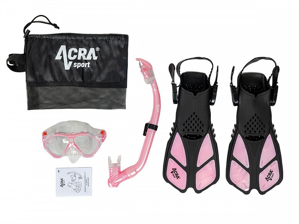 Dětská sada na šnorchlování Acra sport obsahuje: nastavitelné dětské ploutve, suchý šnorchl, plaveckou masku.