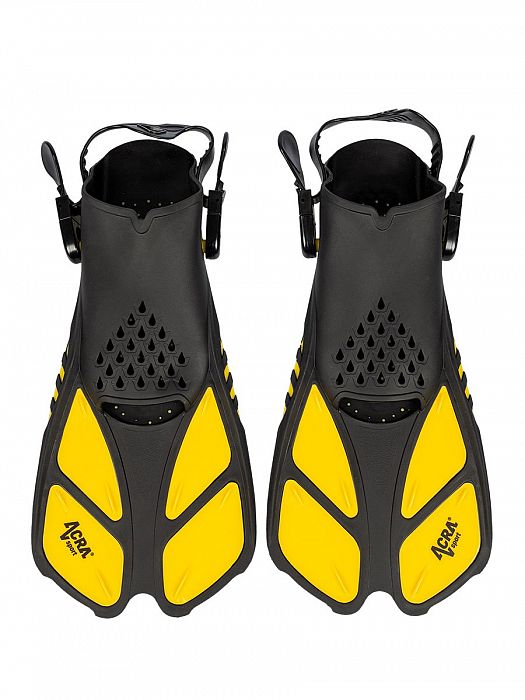- Flexibilní nastavitelné potápěčské ploutve: delší, lehké a responzivní čepel zajišťují plynulý, snadný a zároveň silný odraz. Ploutve s otevřenou patou a nastavitelným popruhem, kapsa na nohu a popruh jsou vyrobeny z odolné gumy, která zajišťuje pohodlné nošení. Ploutev Acra Sport poskytuje vynikající tah s mírnou silou při kopání, ideální pro vaše šnorchlování nebo potápění.