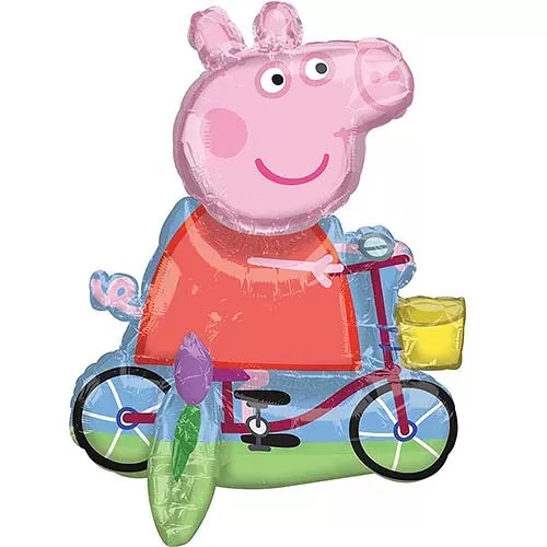 Popis: Stojící balonek Prasátko Peppa na kole 55 x 45 cm