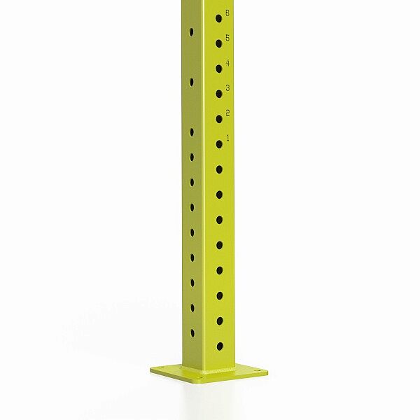 Hlavní stojna je opatřena montážní deskou o výšce 8mm, 4 otvory zaručují pevné a stabilní ukotvení do podlahy. Montážní otvory o průměru 17mm jsou od sebe vzdáleny 5cm. Vedlejší (kolmé) stěny mají otvory posunuty, tímto se dosahuje montážního kroku 2,5cm. Pro lepší přehlednost jsou jednotlivé otvory na hlavní straně číslovány.