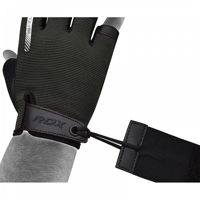 Vzpěračské rukavice RDX T2 poloprstové a s přidaným páskem na zápěstí pro lepší podporu a ochranu. Vyrobeno z nejjemnějšího strečového materiálu, který se dokonale přizpůsobí tvaru vaší ruky. Silikonová rukojeť s pěnovým polstrováním G-foam zajišťuje absolutní trakci a ochranu dlaně před třením, které způsobuje puchýře, aniž by byl obětován úchop při vzpírání, mrtvém tahu nebo powerliftingu. Základna palce je vyrobena z mikrovlákna s perforací pro proudění vzduchu, které zabraňuje pocení. Pohodlný a zároveň pružný spandex ve vnitřní části prstů objímá ruku, aby se dokonale přizpůsobil jejímu tvaru.