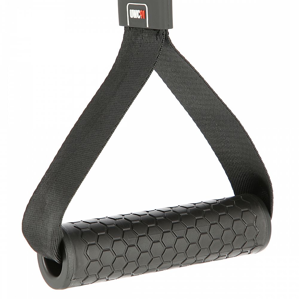 Adaptér HMS UWC91 je úchyt k horní a spodní kladce, nebo jde zapnout k posilovací gumě. Madlo z vysoké vrstvy gumy zaručuje vysoký komfort tréninku a pevný úchop. Hliníková, šroubovací karabina složí k rychlému a bezpečnému zaháknutí kladky.