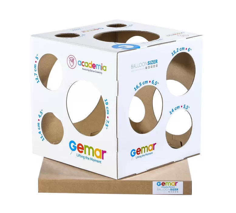 Kartonový sizer od firmy Gemar k dokonalému měření velikostí balónků pro dekorace.