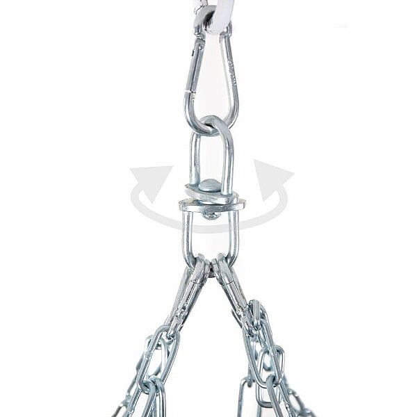 Pytel nesou 4 řetězy zakončené karabinou a otočným závěsem, celková nosnost řetězů ja až 640 kg. Nosná oka mají tvar trojúhelníku, toto provedení nedeformuje nosné, nylonové popruhy jako v případě kulatých ok. Každý nylonový popruh má nosnost až 500 kg. Celková výška pak je cca. 180 cm. Pro omezení pohybu pytle během tréninku je na spodní straně instalováno ocelové oko pro připevnění k podlaze pomocí gumového expandéru.