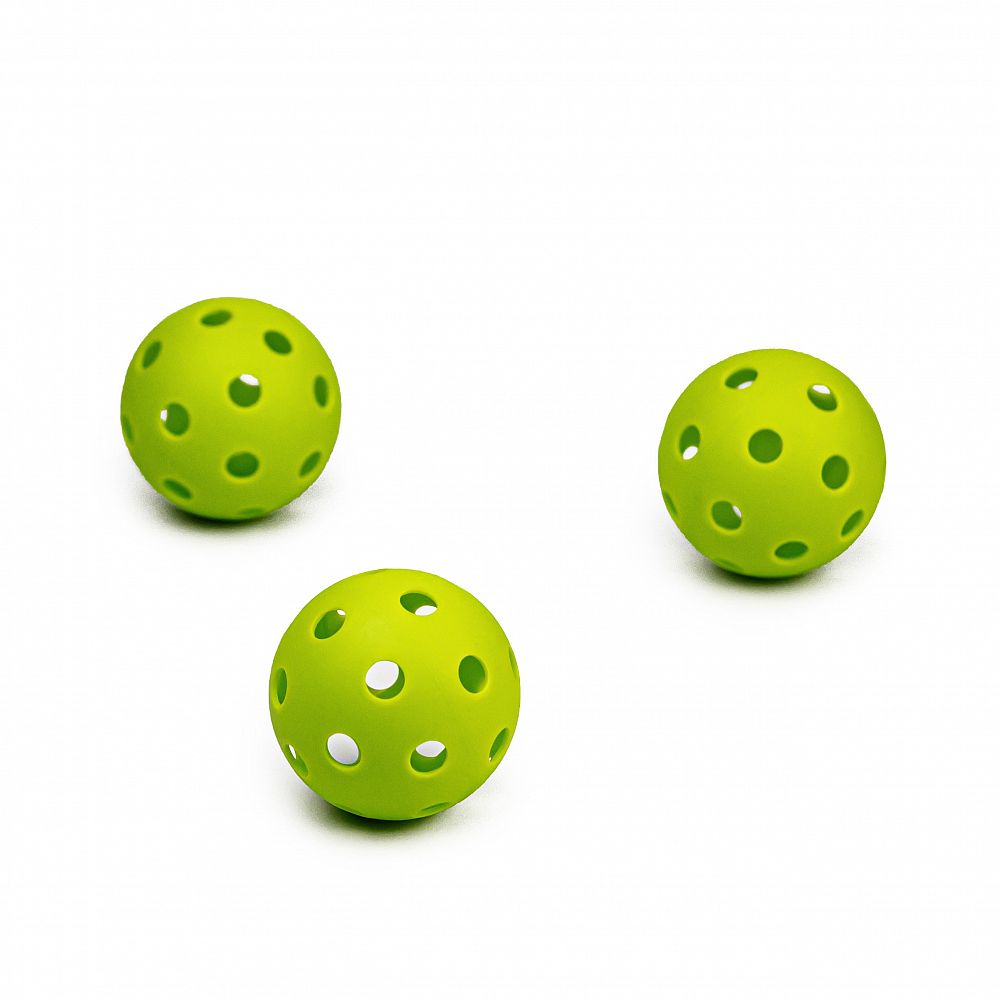 Čtyři Speciální Míčky: Součástí sady jsou čtyři zelené perforované míčky, které jsou navrženy speciálně pro pickleball. Tyto míčky mají specifické vlastnosti pro optimální let a odskok na hřišti.