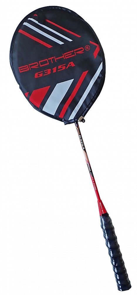 Popis: Badmintonová raketa Brother G315A s hliníkovým rámem a pouzdrem červenočerná