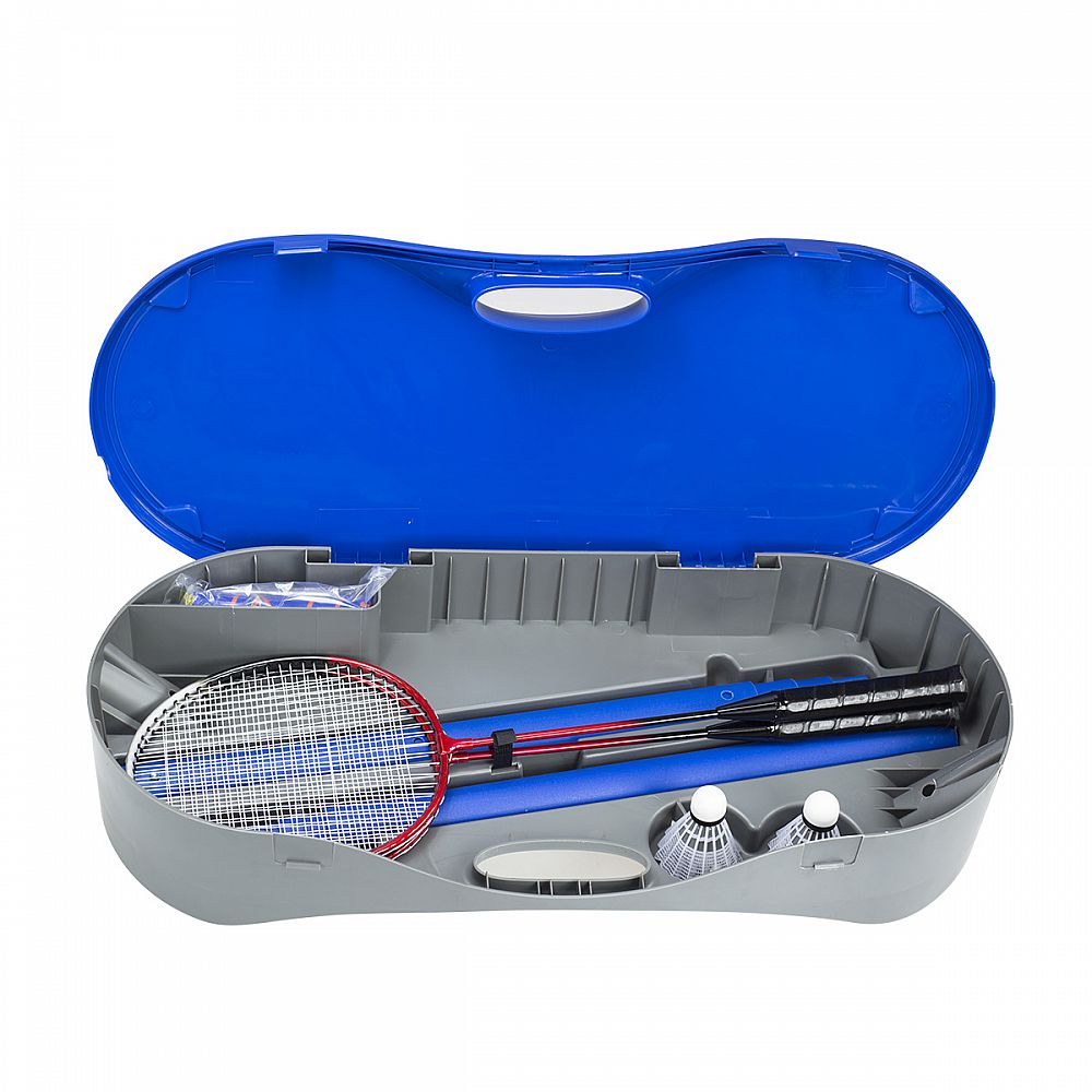 Sestava nastavitelné sítě na badminton, tenis a 2 raket na badminton. Celá sada se nachází v plastovém kufříku, který slouží taktéž jako základna. Síť má 2 velikosti nastavení a to přímo na jednotlivé sporty. Nejvyšší nastavení pro badminton má 155 cm a na tenis je síťve výšce 96 cm. K nastavení sítě není potřeba žádné nářadí, stačí pouze zacvaknout požadovanou velikost.