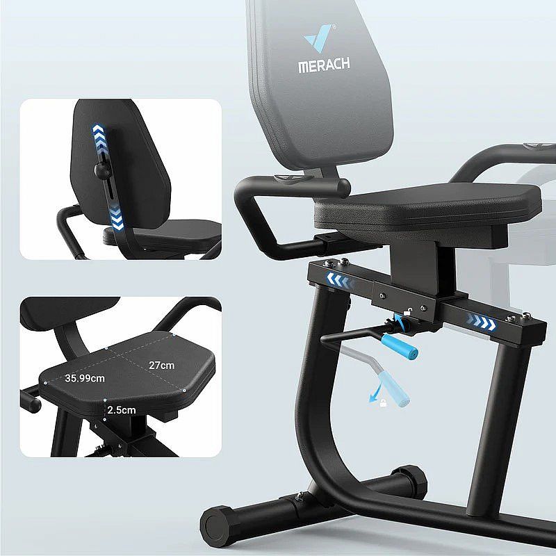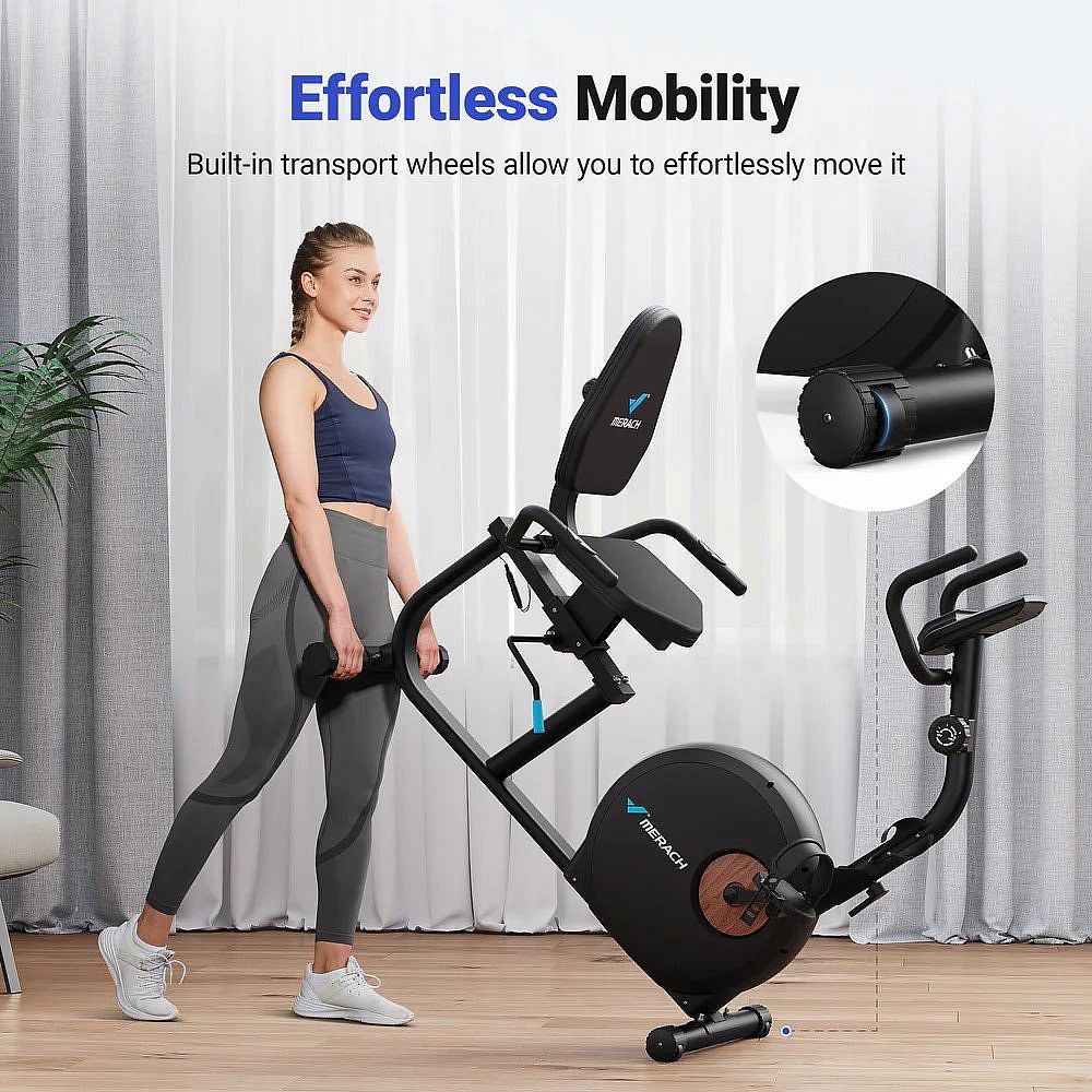 Lehátkový rotoped MERACH S23B1 nabízí efektivní trénink celého těla s odporovými pásy, nastavitelným sedadlem a 8 úrovněmi odporu. Snadná montáž a snadné přemístění po místnosti díky transportním kolečkům.