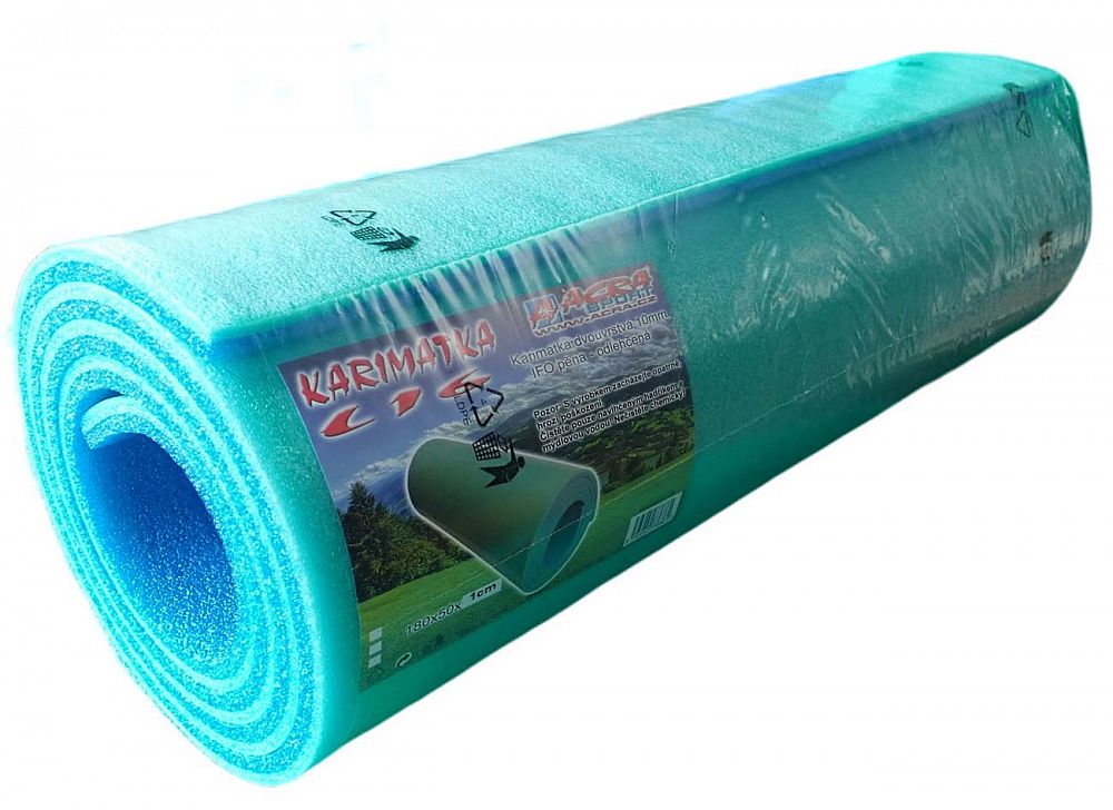 Karimatka dvouvrstvá, tloušťka 10 mm, rozměr 180 x 50 cm. IFO pěna – odlehčená. Karimatka je vhodná pro turistiku a kempování. K dispozici v barvě zeleno-modré.