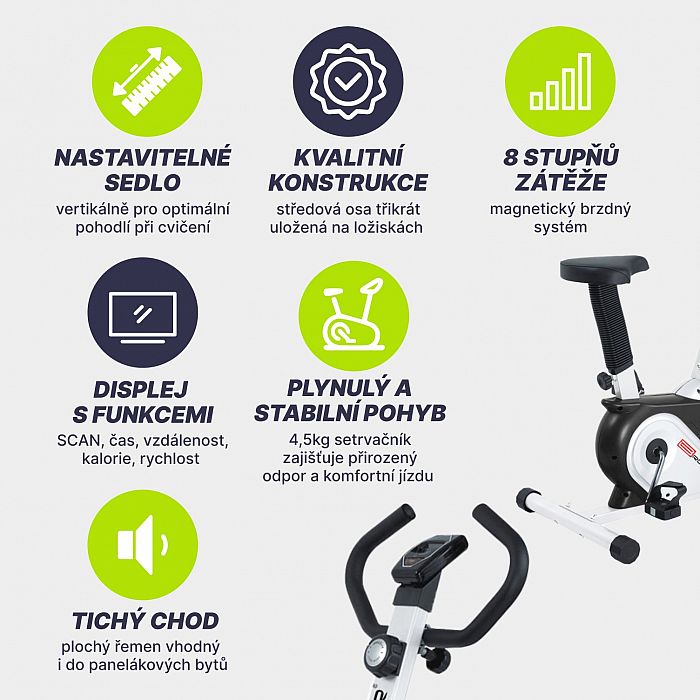 - Funkce computeru: scan, čas, vzdálenost, kalorie, rychlost.