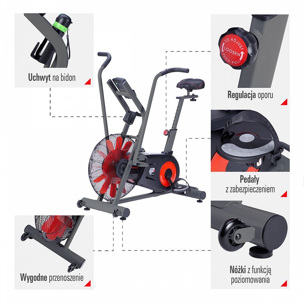 Zátěž při šlapání je generována větrným kolem, které připomíná ventilátor, jeho lopatky jsou kolmo ke směru pohybu a během otáčení se využívá odporu vzduchu. Zátěž je přímo úměrná počtu otáček větrného kola, srozumitelně napsáno - čím rychleji šlapete, tím větší je zátěž. Každý si tak může najít ideální rytmus pro svůj trénink.