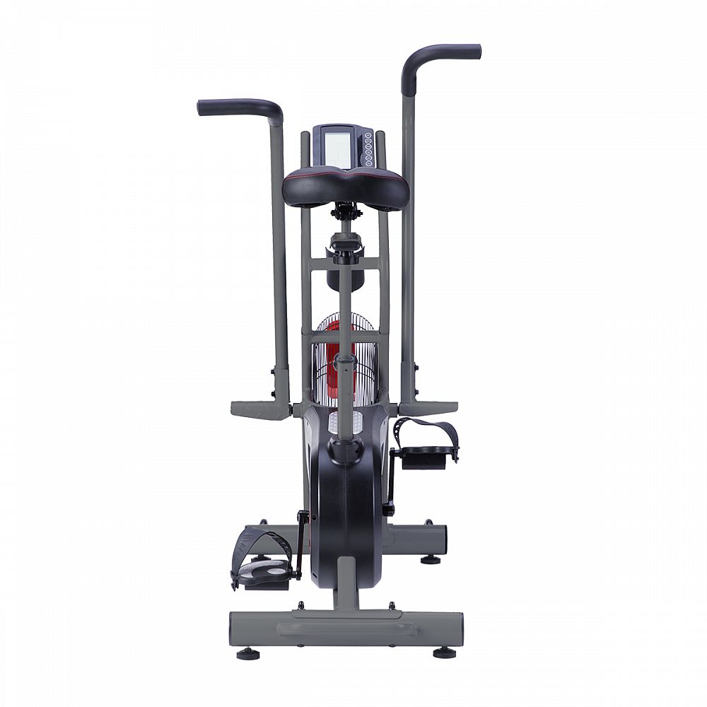 Pohyblivá madla zapojují do tréninku ruce, díky tomu je jízda na Air Biku náročnější a zapojuje do práce větší část těla, než běžný rotoped. Na konstrukci nalezneme také 2 stupačky, na které si položíme chodidla a Air Bike MP8880 můžeme roztáčet pouze rukama. Tato variabilita nám umožňuje 3 druhy tréninku - pouze nohy, pouze ruce, celé tělo. Trenažér je také vybaven 4,6 kilogramovým zátěžovým kolem, které má na starosti plynulost pohybu a vyrovnávání slepých úhlů během pohybu choditel.