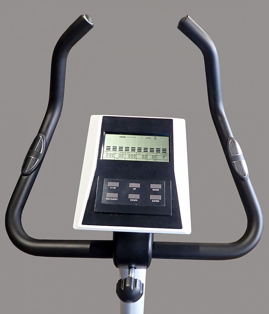 Elektrický PROGRAMOVATELNÝ rotoped BC84E představuje kvalitní model rotopedu se všemi prvky moderního posilovacího stroje. Stroj je dodáván s adaptérem pro zapojení do sítě (počítač i motor zátěže je napájen ze sítě – spotřeba je cca 10 Wattů za 1 hodinu, není třeba napájení bateriemi). Stroj je napájený ze sítě pomocí adaptéru. To umožňuje plně automatickou regulaci zátěže dle zvoleného programu. Jedná se o posilovací stroj s přednastavenými programy perfektně propracovaný s následujícími parametry: