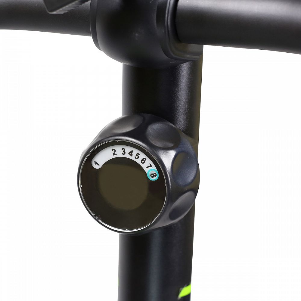 Sedlo je nastavitelné jak vertikálně, tak i horizontálně. Pohodlné pedály jsou opatřeny nastavitelnými řemínky. Řídítka jdou naklopit a naleznete na nich elektrody pro měření tepové frekvence.