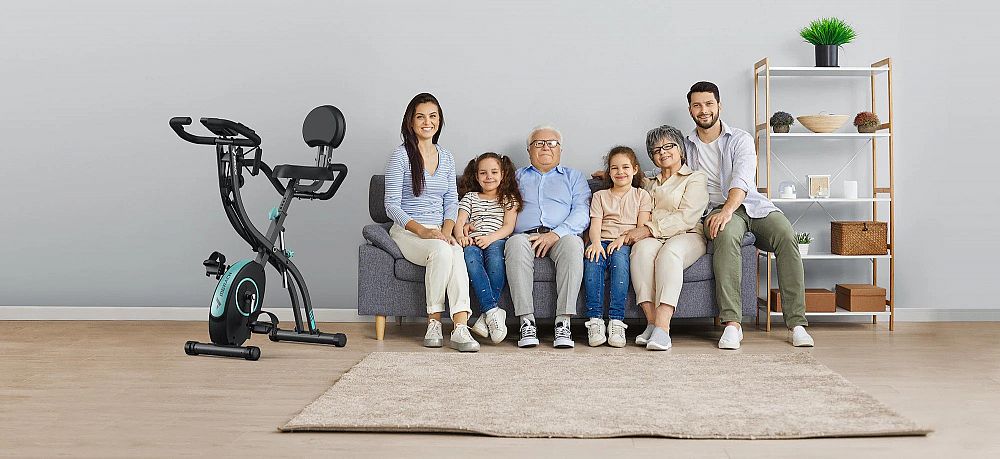 - Prostorově úsporný design – skládací rám, nosnost 136 kg, vhodný pro uživatele s výškou 132 cm – 185 cm.