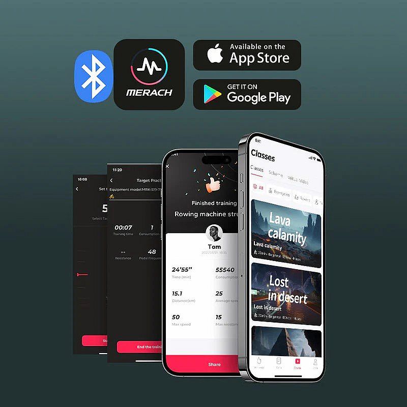 Podporuje Merach, Kinomap, Zwift, Apple Health, Google Fit, Fanton Fite (od Merach).