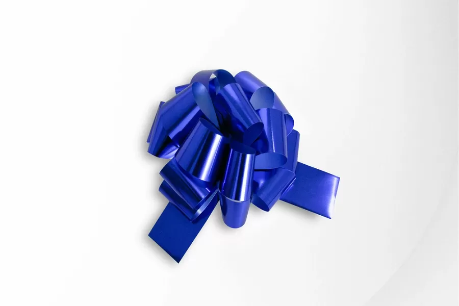 Ozdobná papírová stuha, která se po stáhnutí promění v hezkou rozetu, kterou upevníme jako ozdobu na dárky v barvě modré.Velikost: 18 cm