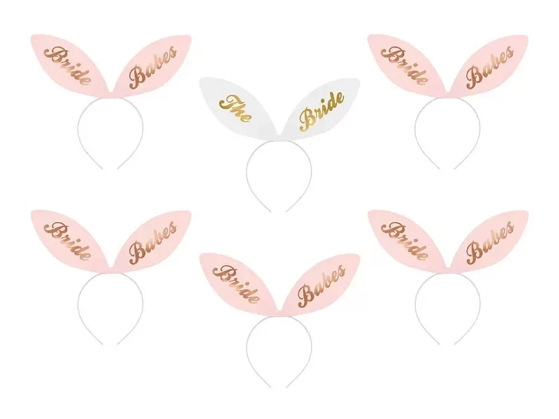 Čelenky ve tvaru králičích oušek pro nevěstu a její tým. Na rozlučce se svobodou s těmito čelenkami zazáříte. Pro nevěstu ouška bílá s nápisem THE BRIDE, pro tým nevěsty ouška růžová s nápisem BRIDE BABES.
