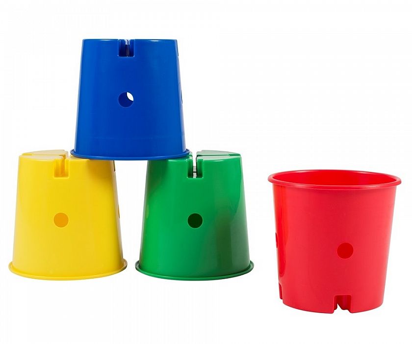 Objevte všestrannost a radost z pohybových aktivit. Tato sada čtyř multifunkčních kbelíků poskytuje nekonečné možnosti využití při tělesné výchově a rekreačních aktivitách. Ať už se jedná o štafetové závody, překážkové dráhy, házecí hry, cvičení na rozpoznávání barev nebo skládání kyblíků na sebe. Tato sada nabízí bohatý základ pro pohyb, učení a zábavu. Různé barvy mohou pomoci v tréninkových cvičeních pro rozlišování týmů, úkolů nebo stanovišť. Sada kbelíčků může sloužit k rozšíření vaší překážkové dráhy Vário.
