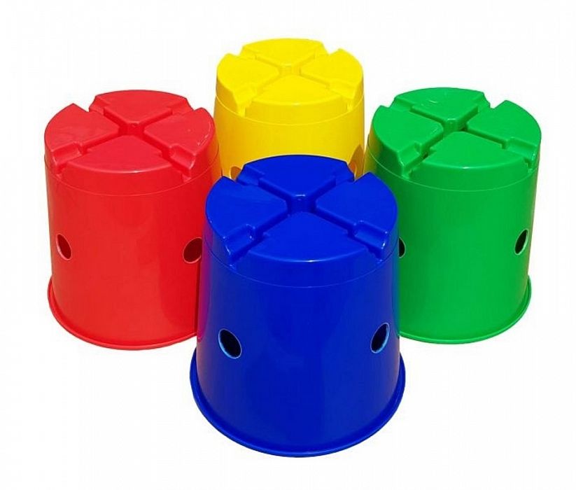 Zkombinujte kbelíky s tyčemi, základnami, bloky juve nebo plochými obručemi a vytvořte si tak překážky na hřišti nebo basketbalový koš. Možnosti jsou téměř neomezené. Díky tomu jsou nejen univerzální pro různé aktivity, ale také jsou vhodné pro podporu kreativity a schopnosti řešit problémy u dětí i dospělých.