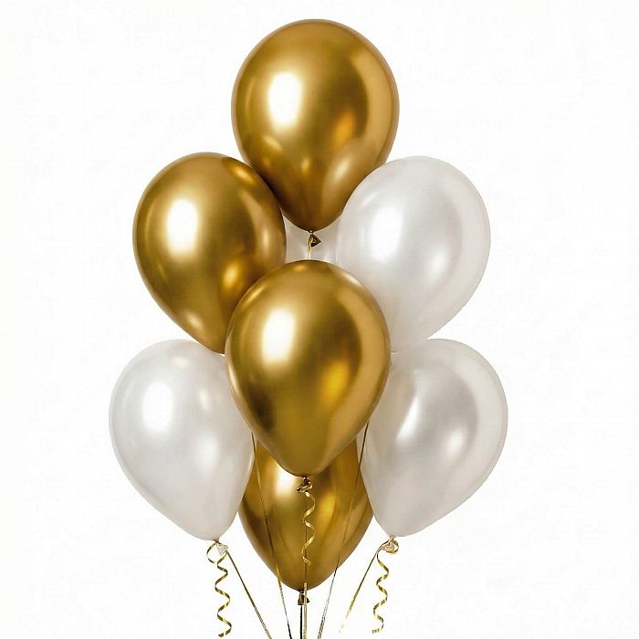 Latexové balonky zlato-bílé 30 cm, 7 ks