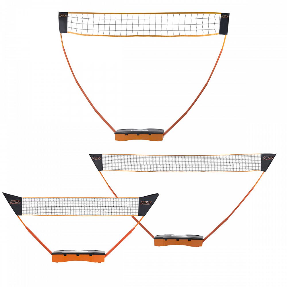 Sestava nastavitelné sítě na badminton, tenis, volejbalu či jiných sportů, které potřebuji síť. Celá sada se nachází v plastovém kufříku, který slouží taktéž jako základna. Síť má 3 velikosti nastavení a to přímo na jednotlivé sporty. Nejvyšší nastavení, vhodné pro volejbal, má 224 cm, badminton 155 cm a tenis má síť ve výšce 100 cm. K nastavení sítě není potřeba žádné nářadí, stačí pouze zacvaknout požadovanou velikost.