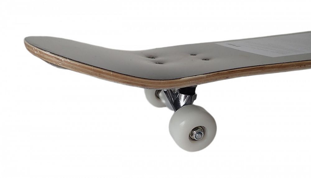 Skateboard závodní s protismykem na vrchní straně desky, zpevněný podvozek odolnější vůči zátěži – 5″ = 12,8 cm šíře, PU kolečka 50 x 36 mm, ložiska ABEC – 1, rozměry desky jsou 31 x 8 inch (palců) = 78 x 20 cm, nosnost 70 kg. Skateboard není stavěný na skoky, mohlo by dojít k ulomení podvozku nebo k prasknutí desky. Protismykový potah je po celé délce skateboardu. K dispozici potisk, viz foto.