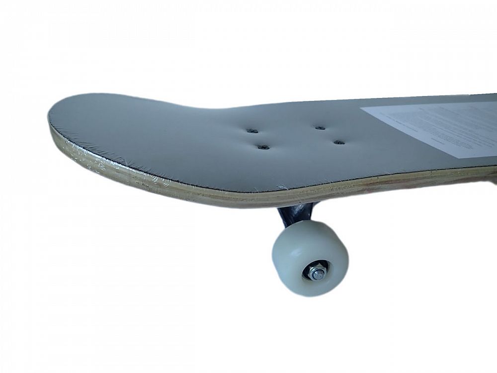 Skateboard závodní se zpevněným ocelovým podvozkem 5″ = 12,8 cm, PU vrstvená kolečka 50 x 36 mm, ložiska ABEC – 7, rozměry 9-vrstvé překližkové desky jsou 31 x 8 inch (palců) = 79 x 20 cm, nosnost skateboardu je 80 kg. Určený je pro začínající jezdce a možnost výuky triků.