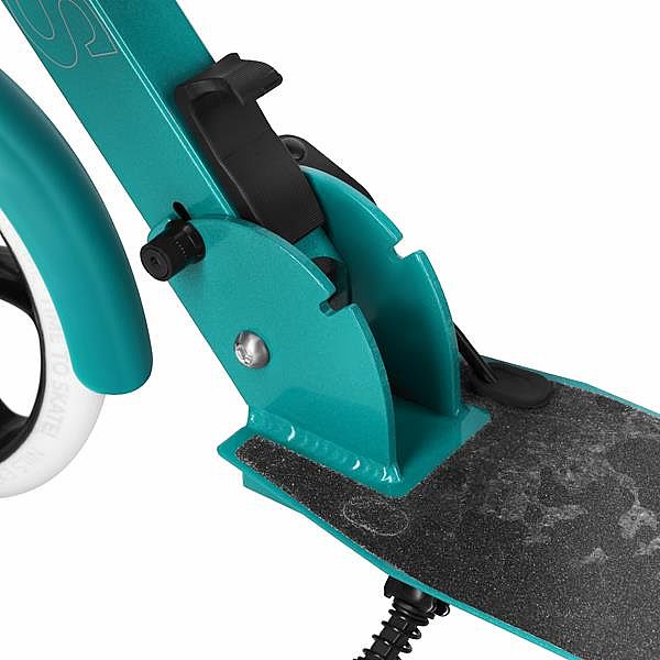 Pohodlnou jízdu zajišťují velká 20centimetrová kola z polyuretanu (PU), která tlumí drobné nerovnosti povrchu a zajišťují stabilitu i při vyšších rychlostech. Ložiska ABEC 9 umožňují plynulé a tiché otáčení kol, což výrazně zvyšuje jízdní komfort. Tlumič na předním kole napomáhá klidnější jízdě a snižuje vibrace přenášené do řídítek.