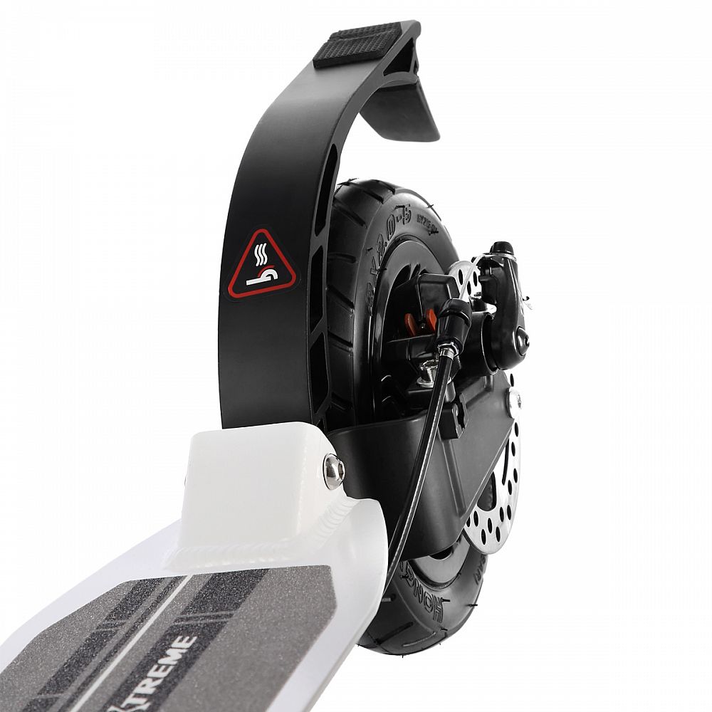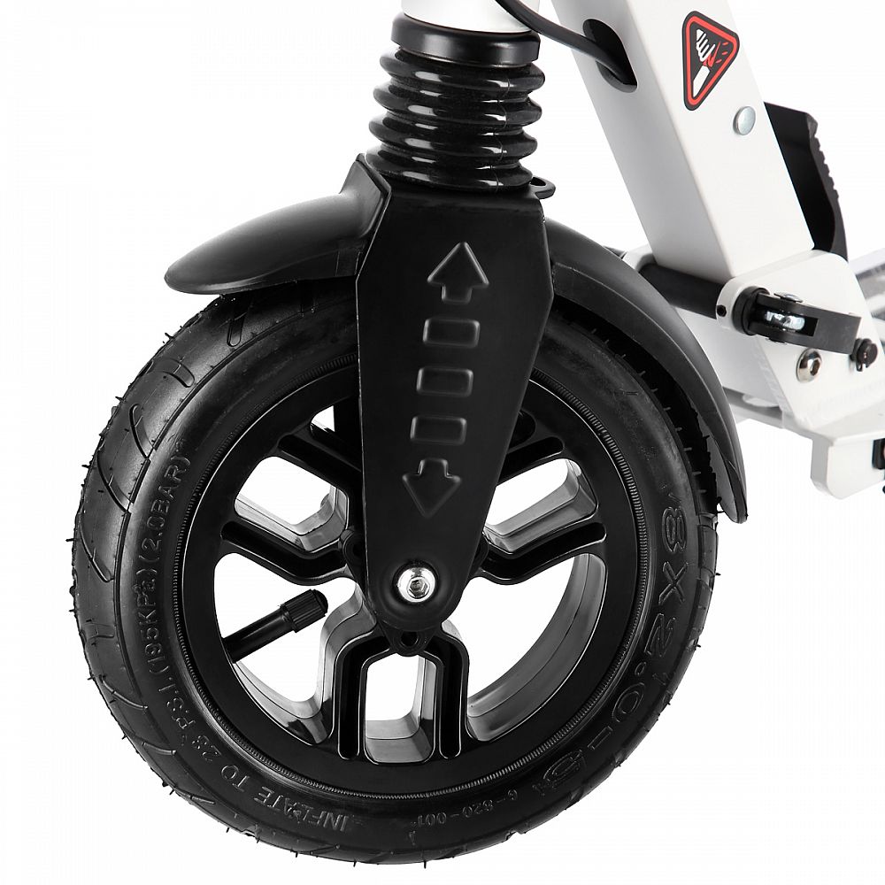Systém odpružení obou kol zvyšuje jízdní komfort. Tlumiče pohlcují nárazy a jízda po nerovném asfaltu, nebo dlažebních kostkách je příjemnější a tižší. Robustní zadní blatník slouží jako přítlačná brzda, která ještě podtrhuje brzdný účinek kotouče. Samotný kotouč je bržděn jedním pístkem, který je mechanicky ovládaný lankem z páčky na řídítkách, ty jsou opatřeny gumovými rukojeťmi, které zajišťují pevný a pohodlný úchop. Velká kola jsou osazena ložisky ABEC 9 a pumpovanou pneumatikou o průměru 200 milimetrů. Tato kombinace zajišťuje rychlou, plynulou a bezpečnou jízdu. Pumpované pneumatiky navíc spolupracují s tlumiči a také pohlcují povrchové nerovnosti. Blatník na předním kole a skládací stojánek jsou již jen pomyslnou "třešničkou na dortu", která přizpívá k maximálnímu možnému komfortu z jízdy a k celkové radosti ze samotného použivání modelu MH208T.