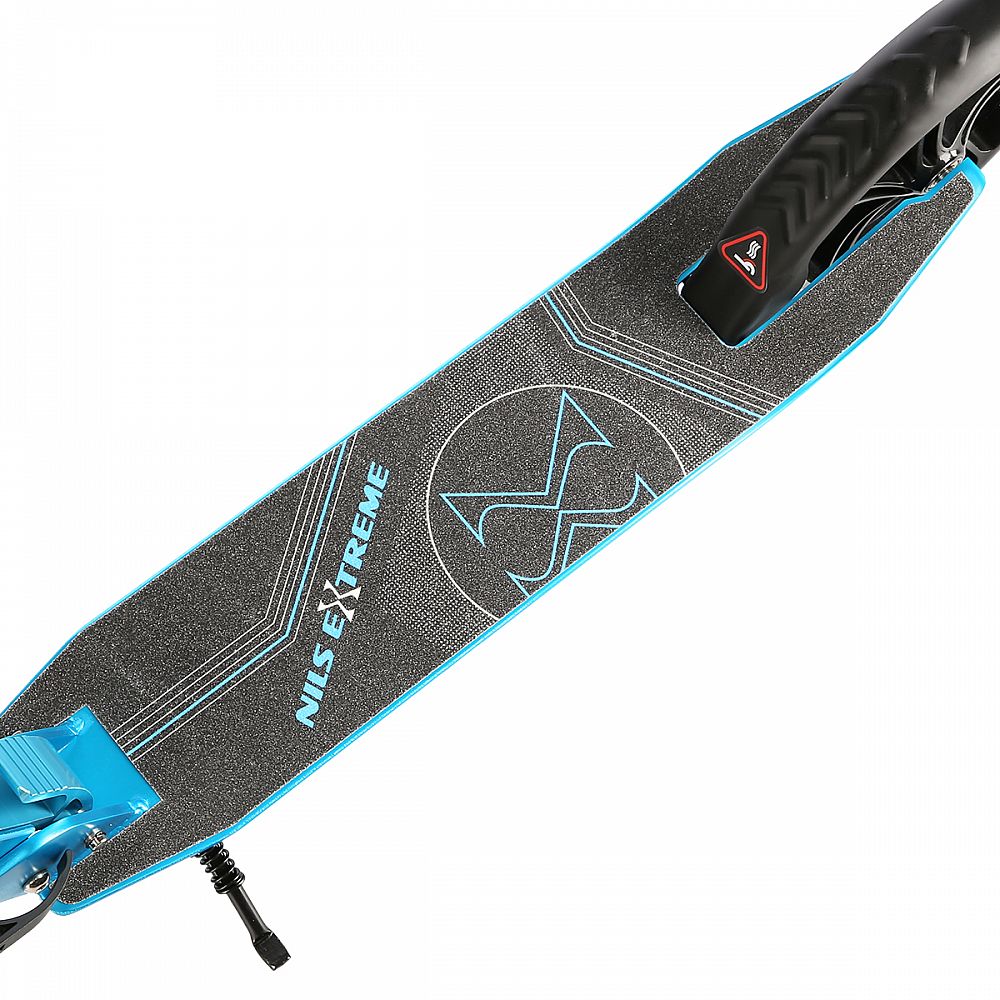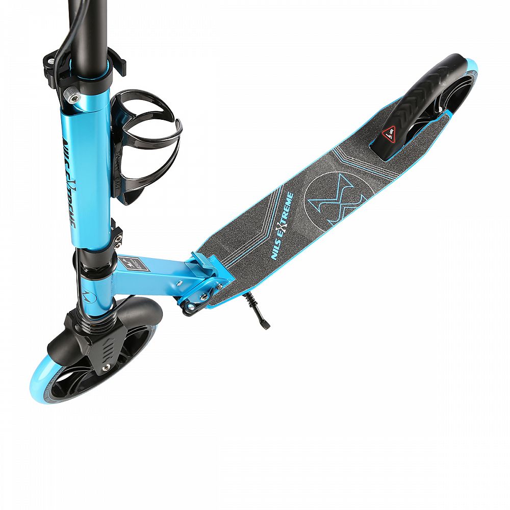 Koloběžka NILS Extreme HM2140 je vhodná pro děti i dospělé. Charakteristikou modelu HM2140 je tlumič na předním kole a zadní brzda ovládána páčkou z řídítek.