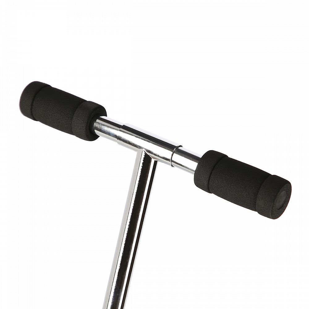 Zadní blatník slouží jako nášlapná brzda. Sklopná řídítka jsou opatřeny pěnovými rukojeťmi, které zajišťují pevný a pohodlný úchop. Řídítka jsou výškově nastavitelná do 3 úrovní. Velká kola jsou osazena ložisky ABEC 7 a polyuretanovou pneumatikou o průměru 200 milimetrů. Tato kombinace zajišťuje rychlou, plynulou a bezpečnou jízdu. Sklopný stojánek umožňuje postavení koloběžky, tekže ji není potřeba pokládat.