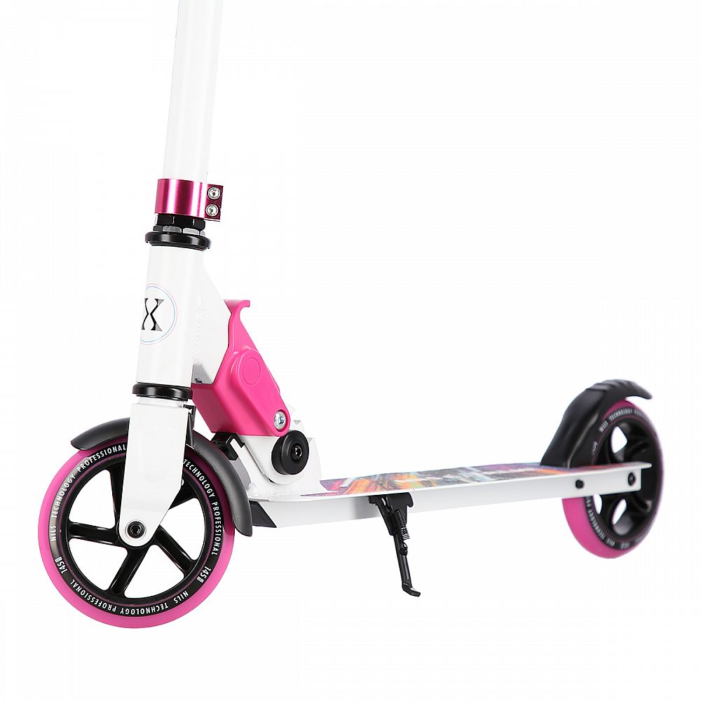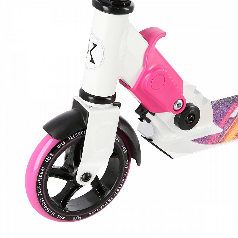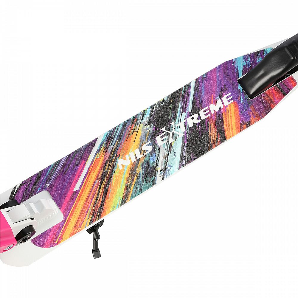 Skládací koloběžka NILS Extreme HD541 je určená především pro děti a dorost. Hlavní předností tohoto modelu jsou polyuretanová kolečka o průměru 145 milimetrů, které zaručují pohodlnou jízdu. Koloběžku lze složit, takže při uskladnění nezabírá mnoho místa a zároveň si ji můžete brát téměř kamkoliv sebou ať už jedete na výlet například vlakem a nebo pokud jedete autem na dovolenou do zahraničí. Dalšími výraznými prvky jsou protiskluzová nášlapná plocha, gumová madla a zadní přítlačná brzda. Klademe důraz především na atraktivní vzhled a kvalitní provedení, díky kterému máte jistotu, že kupujete kvalitní koloběžku jenž potěší a zároveň i ochrání. Chcete-li pro bezpečnost udělat maximum, nezapomeňte se porozhlédnout po přilbě a chráničích.