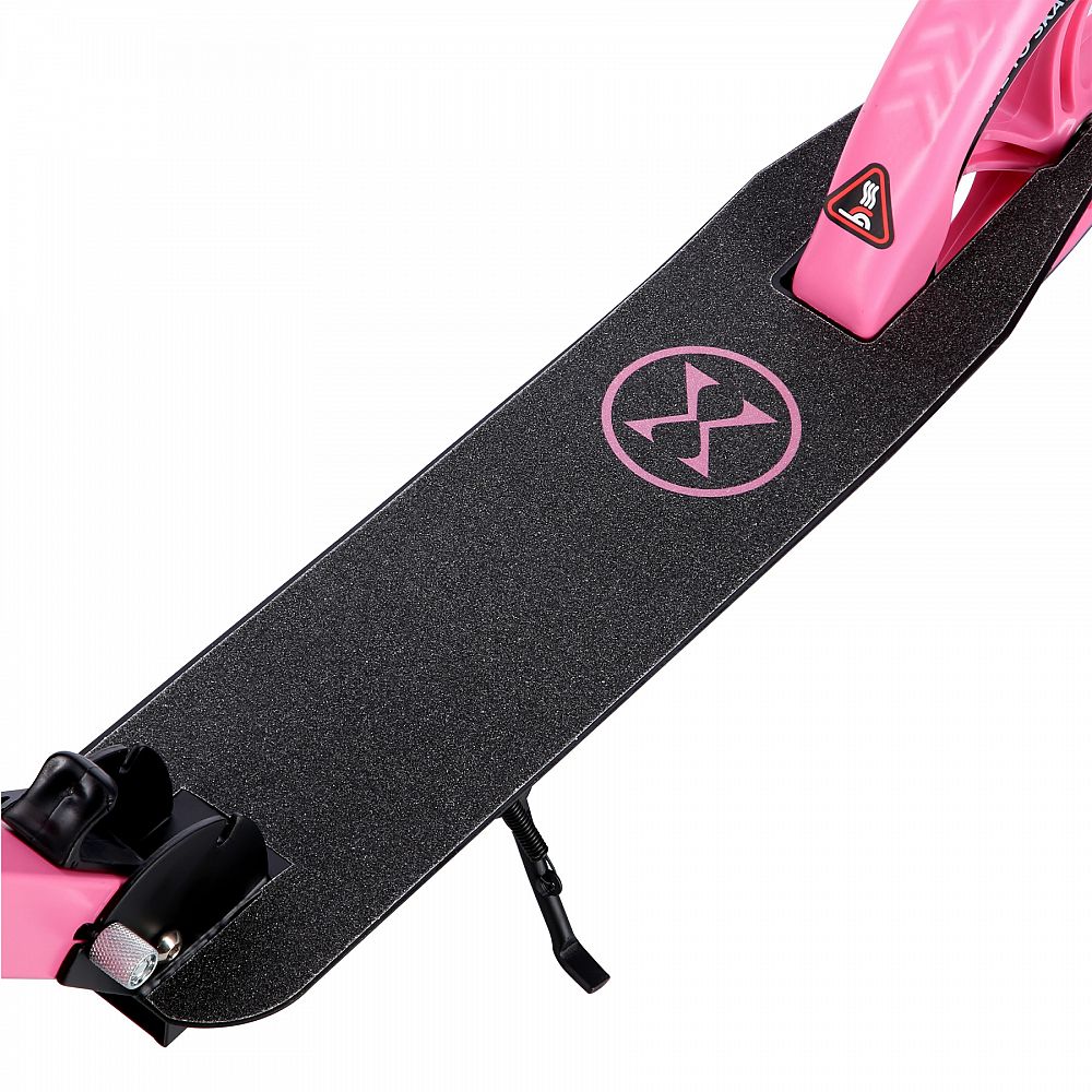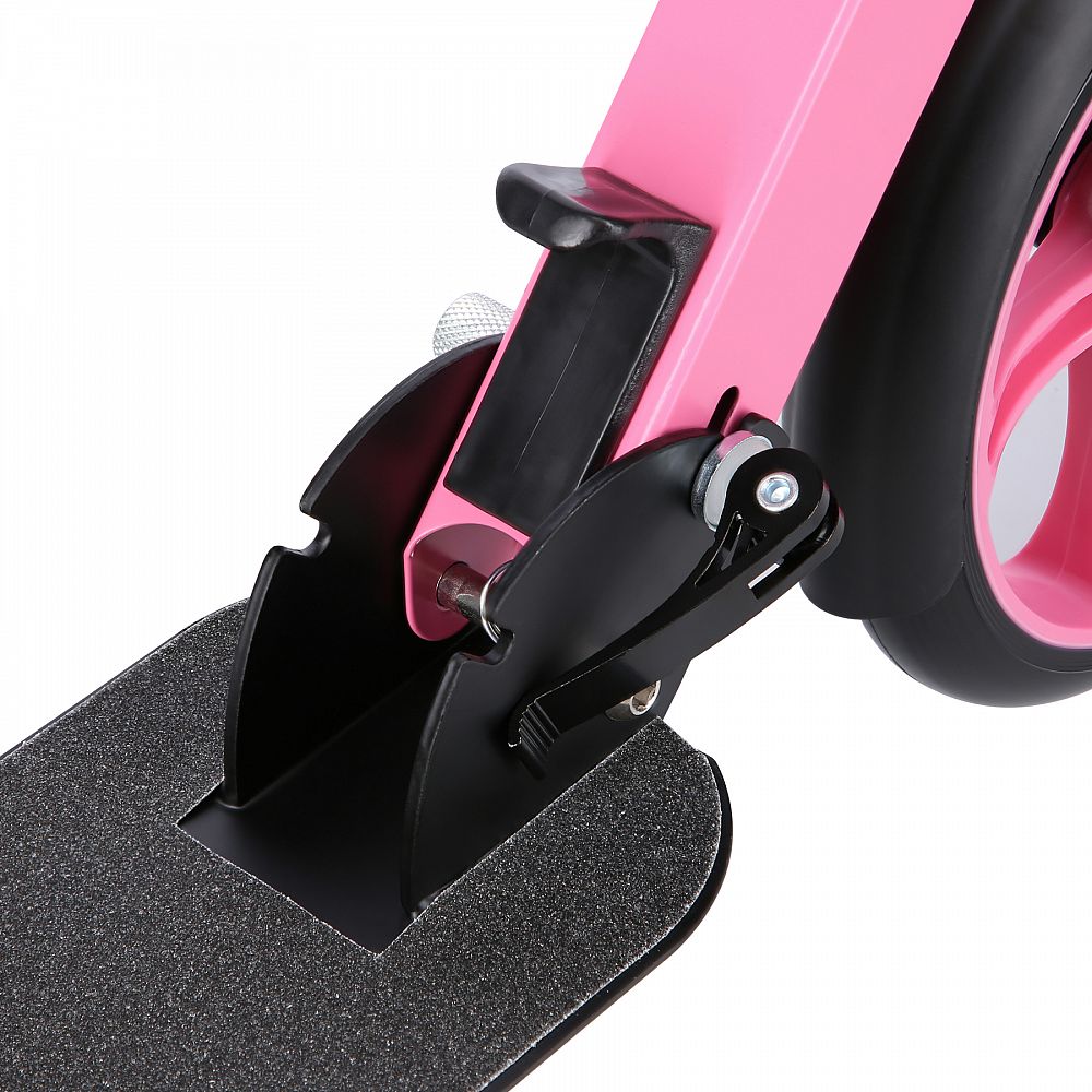 Zadní blatník slouží jako přítlačná brzda. Rídítka je možné při skládání sklopit a pro maximální pohodlí během jízdy jsou opatřena gumovými rukojeťmi. Výšku řídítek lze nastavit do 3 úrovní v rozsahu od 75 do 95 cm.