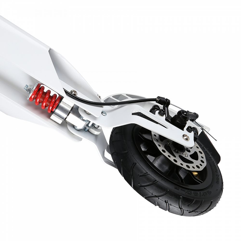 S koloběžkou HM209T máte cestovní komfort na dosah ruky. Rychlá ložiska ABEC9 zaručují hladkou jízdu a výjimečnou odolnost, zatímco nafukovací kola o průměru 200 mm zajistí, že každá cesta bude plynulá a příjemná. Koloběžka je také vybavena předním i zadním tlumičem, což je v této kategorii výrobků jedinečné a stojí za jejím výjimečným komfortem jízdy bez ohledu na nerovnosti terénu. Nastavitelná řídítka umožňují přizpůsobit koloběžku výšce uživatele a nabízejí ideální ergonomii. Gripy jsou gumové s ergonomickým tvarem pro jistý a pevný úchop.