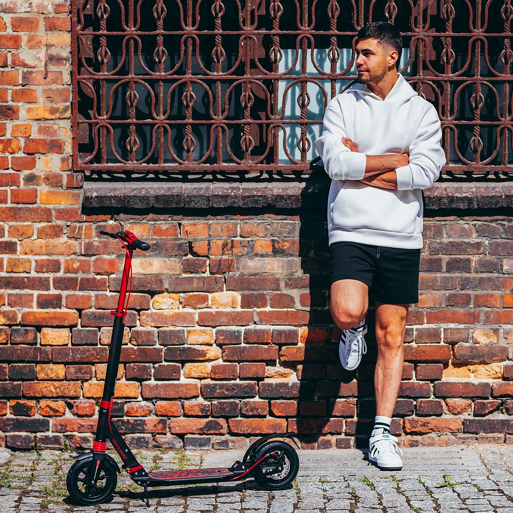 S koloběžkou HM209T máte cestovní komfort na dosah ruky. Rychlá ložiska ABEC9 zaručují hladkou jízdu a výjimečnou odolnost, zatímco nafukovací kola o průměru 200 mm zajistí, že každá cesta bude plynulá a příjemná. Koloběžka je také vybavena předním i zadním tlumičem, což je v této kategorii výrobků jedinečné a stojí za jejím výjimečným komfortem jízdy bez ohledu na nerovnosti terénu. Nastavitelná řídítka umožňují přizpůsobit koloběžku výšce uživatele a nabízejí ideální ergonomii. Gripy jsou gumové s ergonomickým tvarem pro jistý a pevný úchop.