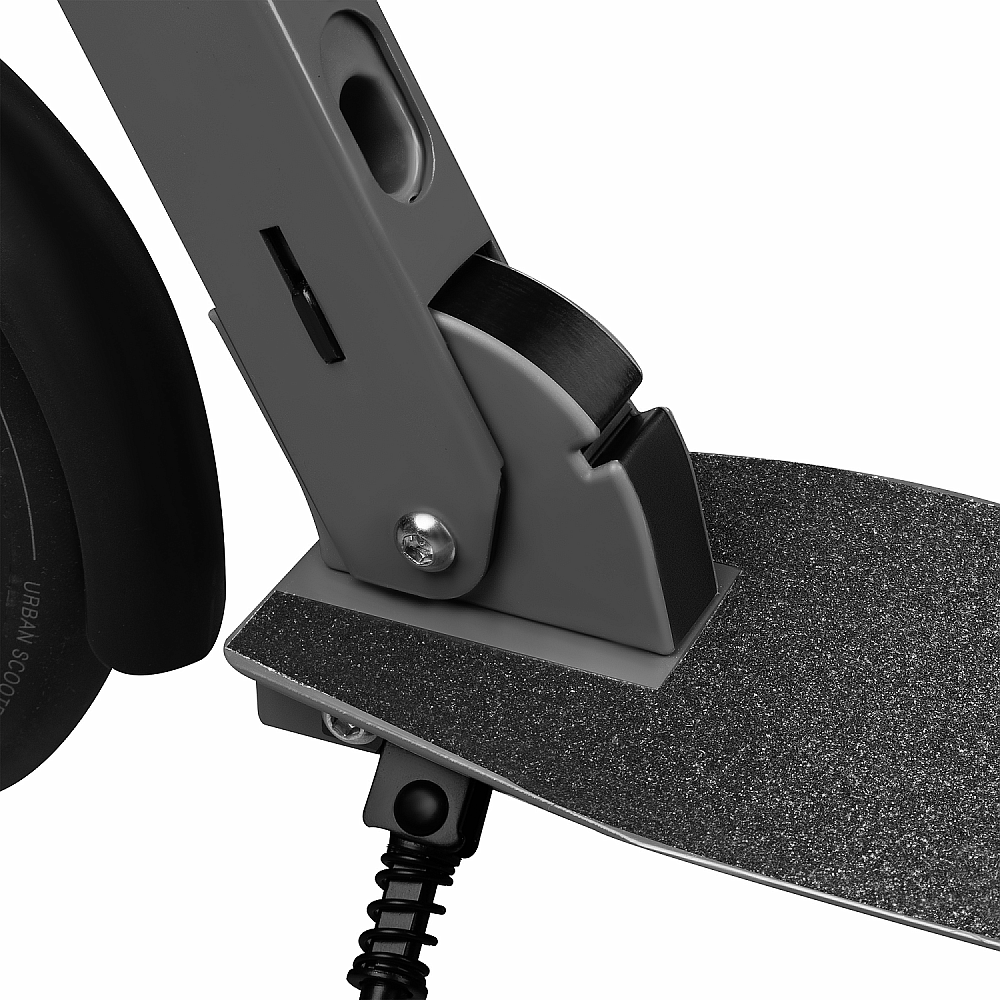 - Bezpečná jízda: protiskluzová deska a dvojitý brzdový systém (ruční a nožní brzda) vám dají plnou kontrolu nad koloběžkou.