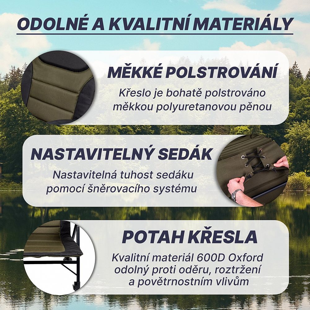 Ať už si chcete zdřímnout, číst knihu, pozorovat splávek při rybaření nebo jen tak relaxovat, toto křeslo vás obklopí pohodlím.