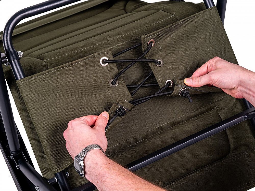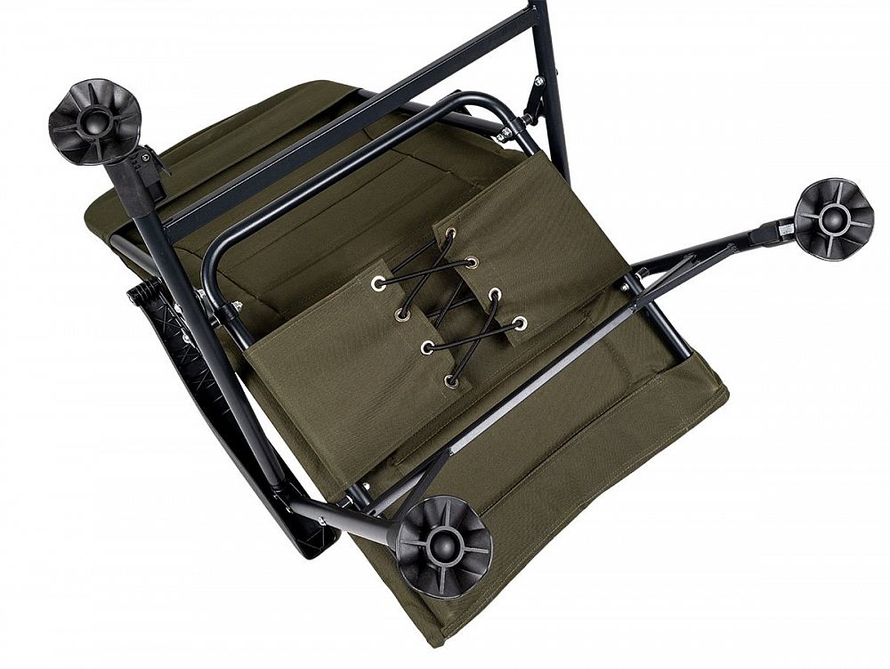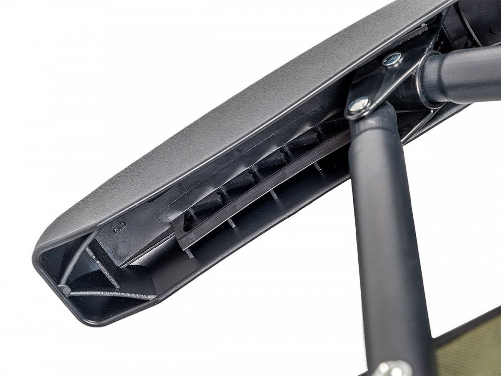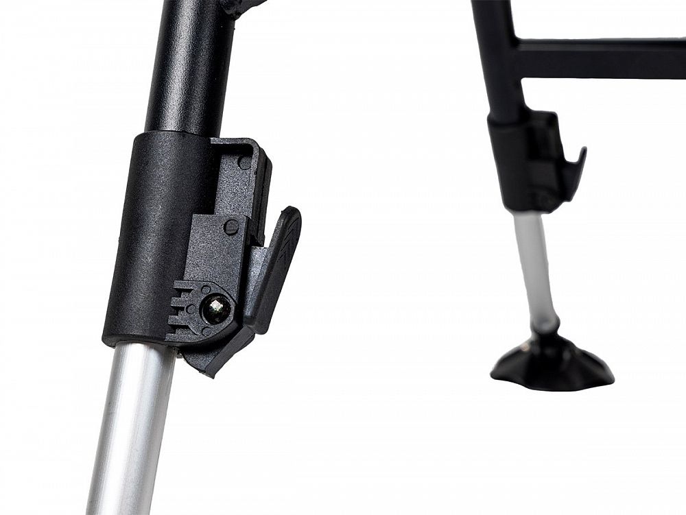 Odolná a stabilní konstrukce: Rám křesla je vyroben z lehké, ale pevné oceli, což zaručuje jeho vysokou stabilitu a nosnost. I přes svou robustnost si zachovává rozumnou hmotnost 6,3 kg, což usnadňuje manipulaci a přepravu. Velké patky na nohách zajišťují stabilitu na různých typech terénu, ať už jste u vody, na nerovné zemi v kempu nebo na břehu rybníka. Spolehlivý aretační systém výsuvných nohou.