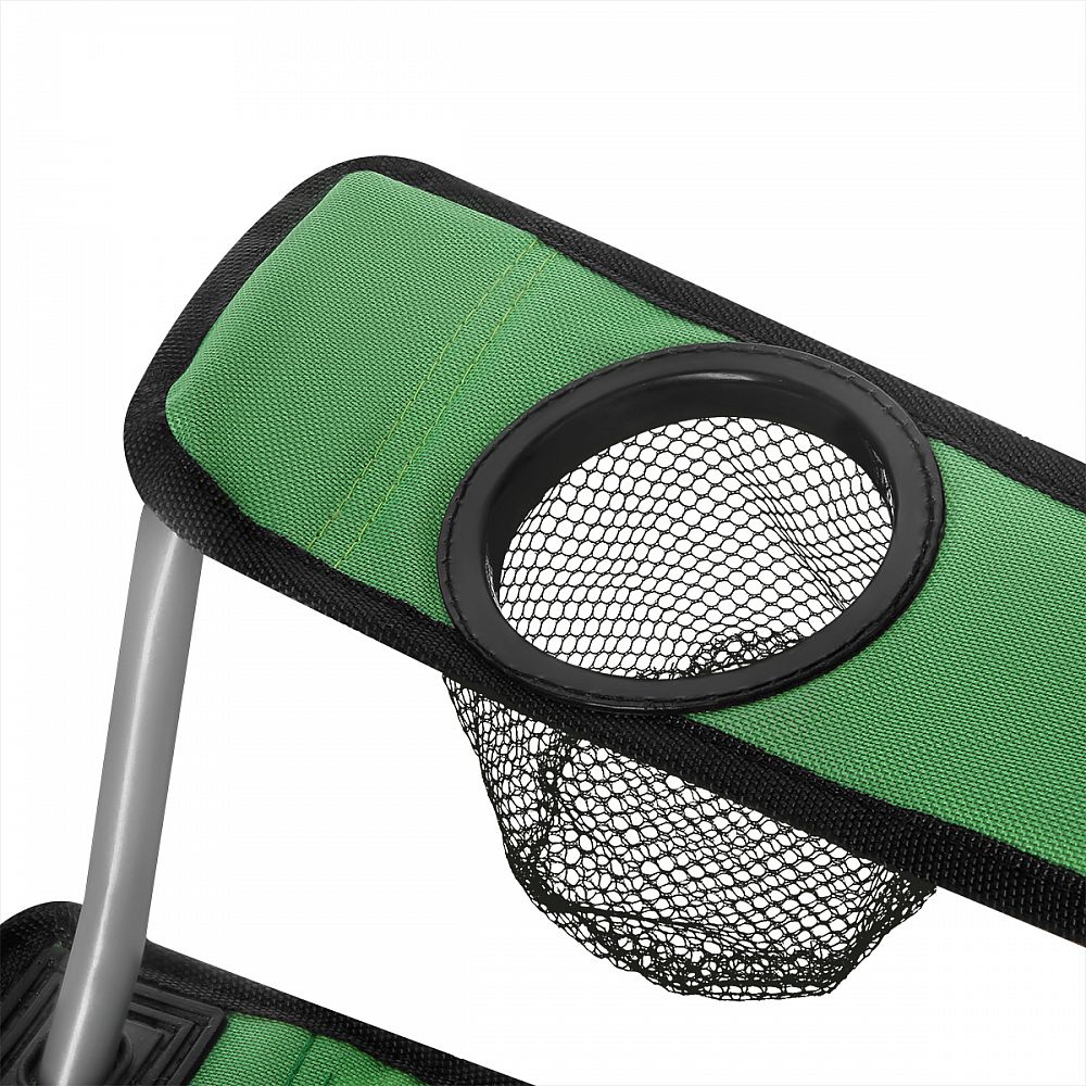 Loketní opěrky mají možnost regulace výšky jednoduchým posunem zadní části po profilu konstrukce. Pravá opěrka lokte je opatřena košíkem, do kterého se pohodlně vejde menší láhev, nebo vysoká sklenice. Pro snadné přenášení lze židli složit. Součástí je ochranný obal s popruhem přes rameno.