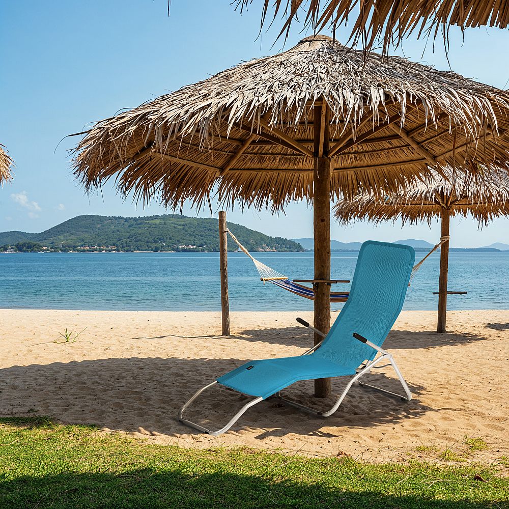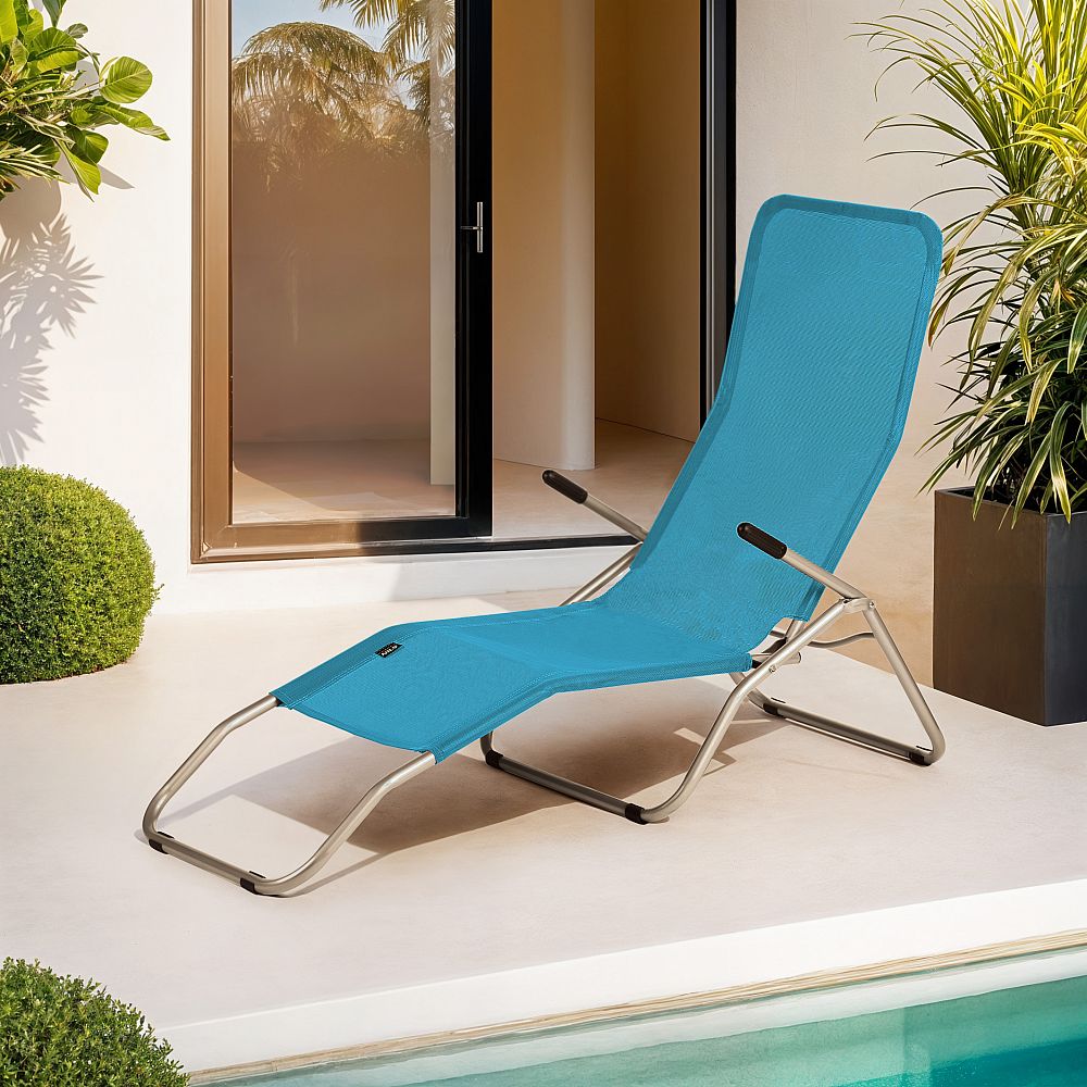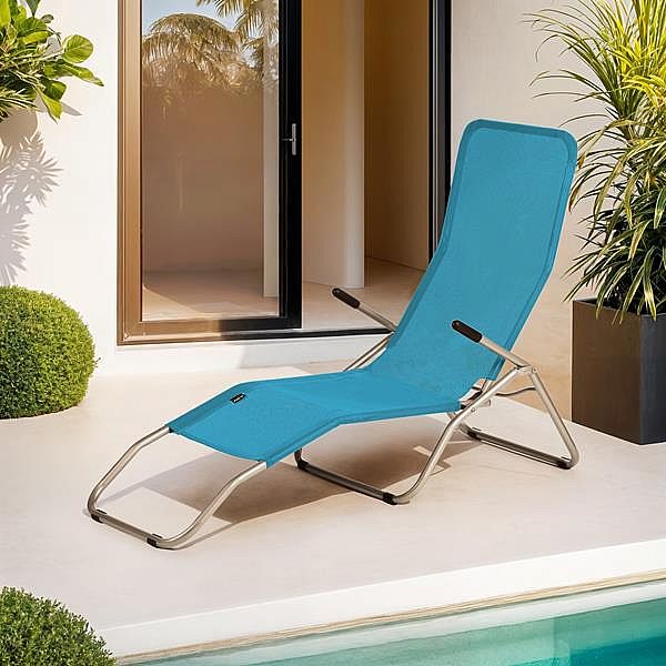 Jedná se o univerzální lehátko, které se osvědčí za každých podmínek. Za jeho stabilitu ručí ocelové profily o průměru 24 mm. Díky pevné konstrukci a materiálu textilen (polyesterové vlákno potažené vinylem), který je velmi odolný, je maximální hosnost lehátka až 100 kg. Součástí jsou také protiskluzové nožky, které zabraňují posouvání.