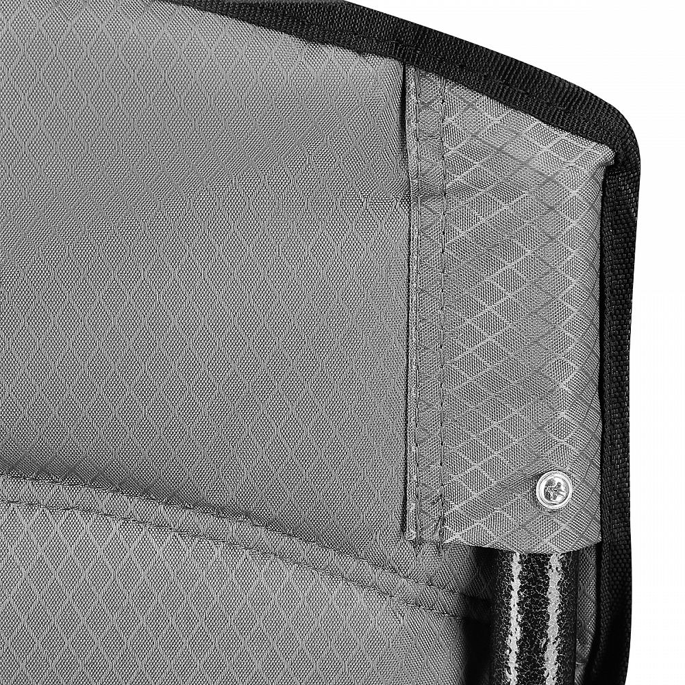 Křeslo NC3075 je skládací, takže si jej můžete snadno vzít s sebou na cesty. K tomu vám dopomůže velice pevný, polyesterový obal, který je součástí sady a který produkt ochrání před poškozením a udrží jej v čistotě během uskladnění. Vak je doplněn popruhem přes rameno. Za područkami jsou otočné háčky, které po zajištění zamezují složení, nebo rozložení konstrukce.