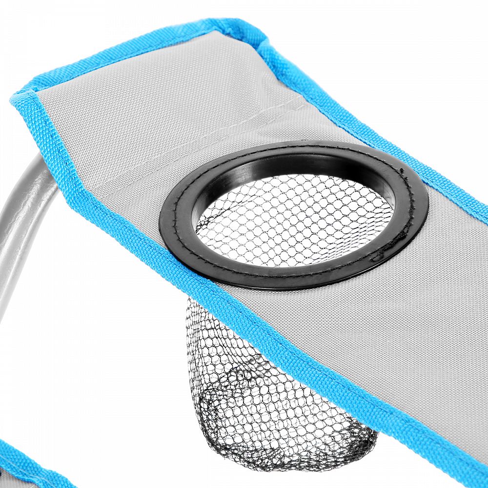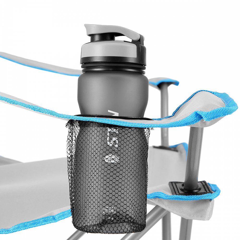 Loketní opěrky mají možnost regulace výšky jednoduchým posunem zadní části po profilu konstrukce. Pravá opěrka lokte je opatřena košíkem, do kterého se pohodlně vejde menší láhev, nebo vysoká sklenice. Pro snadné přenášení lze židli složit.