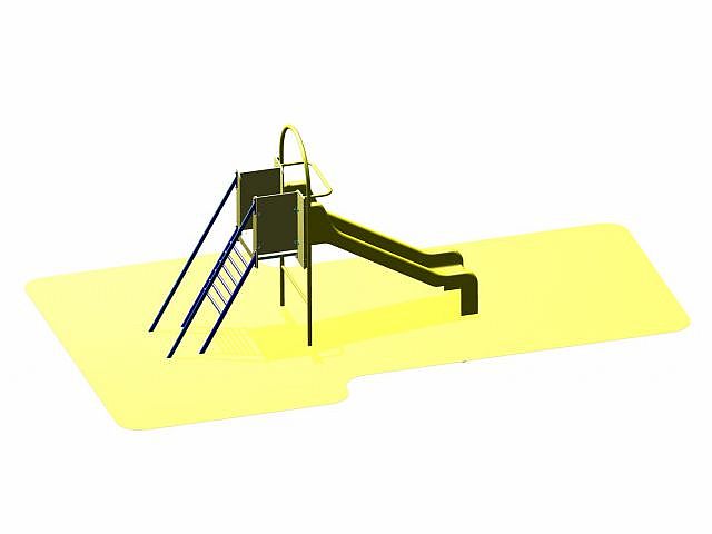 - Ocelová konstrukce s plastovou skluzavkou, plošinou a nástupním žebříkem s madly.