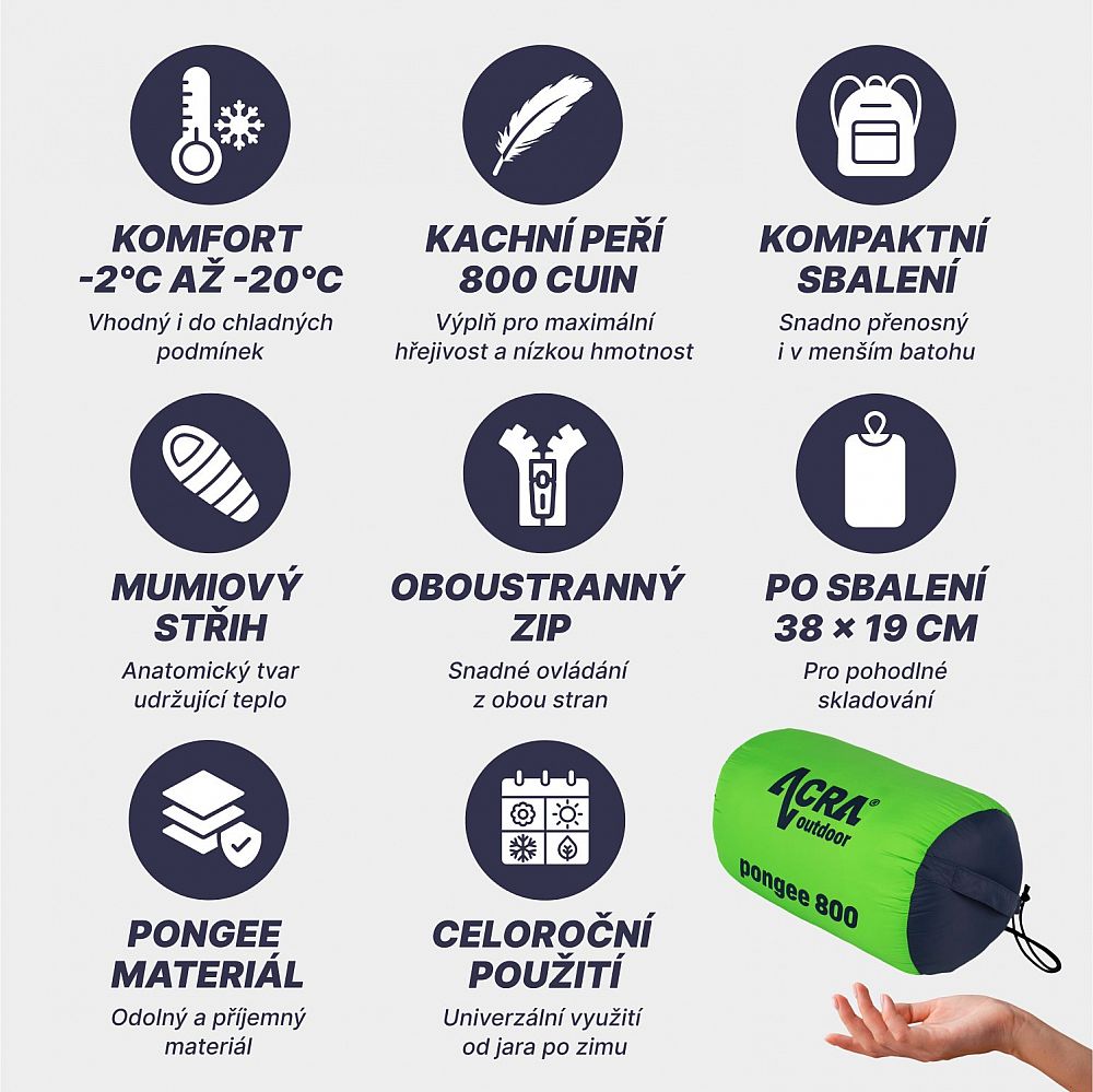 Péřový spací pytel Acra Pongee 800 – hřejivé objetí pro vaše outdoorové dobrodružství!