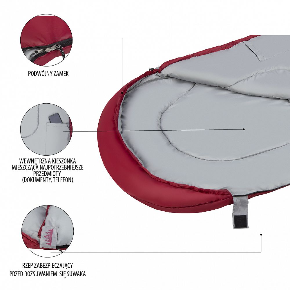 Popis: Prodloužený spací pytel NILS Camp NC2008 bordó/šedý