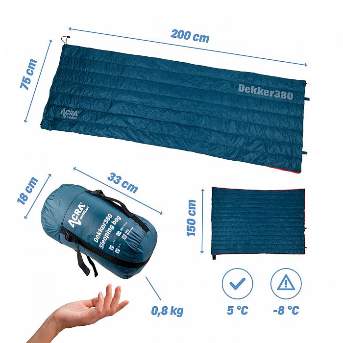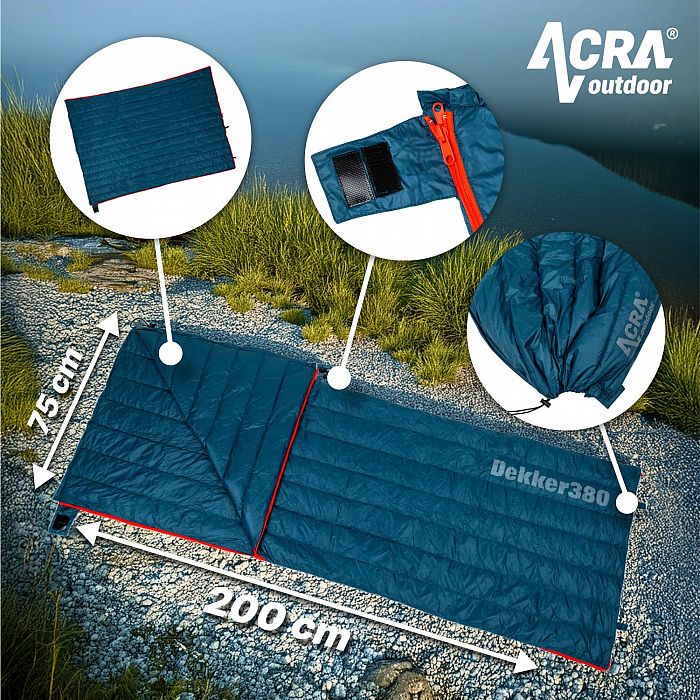Už žádné kompromisy mezi spacákem a dekou v omezeném prostoru stanu či karavanu! S ACRA Dekker380 získáte geniální 2v1 řešení, které promění každou vaši noc v přírodě v luxusní zážitek, ať už jste v kempu, v obytném voze nebo pod širákem. Tento inovativní péřový spací pytel je navržen pro maximální flexibilitu a pohodlí.