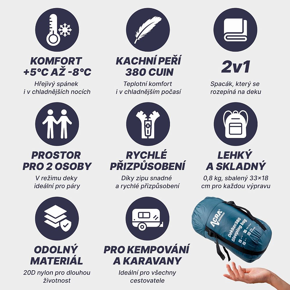 ACRA Dekker380 Péřový Spací Pytel 2v1: Maximální komfort a flexibilita pro váš camping a karavaning!