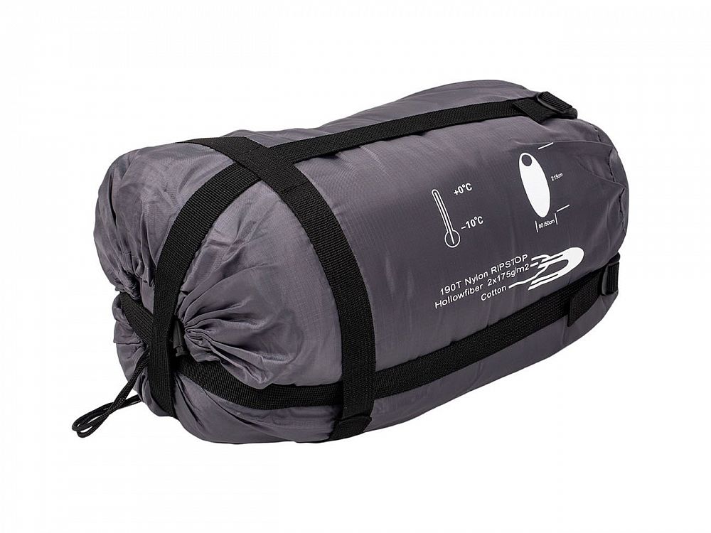 - vrchní materiál je speciální materiál 190T nylon RIPSTOP s úpravou proti průniku vody do pytle, vnitřní vložka je PONGEE – mikroplyš, vnitřní výplň tvoří dvě vrstvy dutého vlákna (hollow fibre) 2 x 175 g/m2 = celkem 350 g/m2 (dvě slabší vrstvy mají lepší tepelně izolační vlastnosti než jedna silná vrstva)