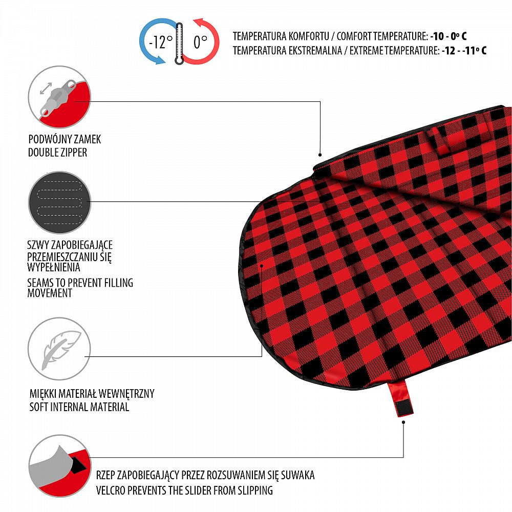 Popis: Spací pytel NILS Camp NC2003 černo-červený
